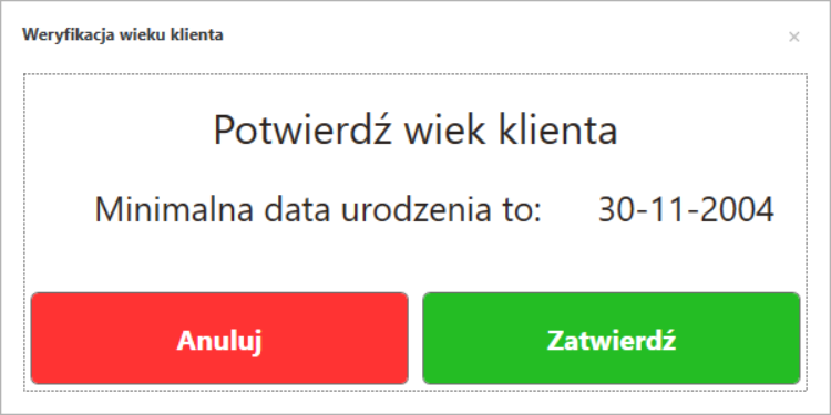• kontrola towarów 18+. Wspomaganie kontroli wieku dla określonych towarów,