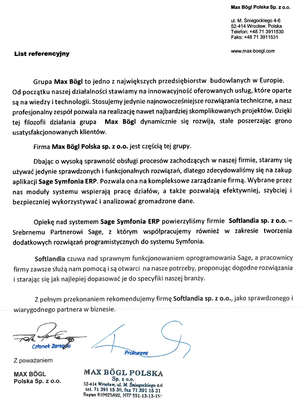 „[…] Softlandia czuwa nad sprawnym funkcjonowaniem oprogramowania Sage, a pracownicy firmy zawsze służą nam pomocą i są otwarci na nasze potrzeby, proponując dogodne rozwiązania i starając się jak najlepiej dostosować je do specyfiki naszej branży.”